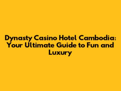 Dynasty Casino Hotel Cambodia: Your Ultimate Guide