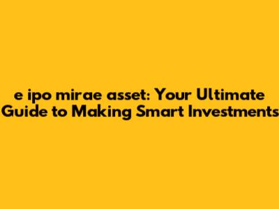 E Ipo Mirae Asset: The Ultimate Guide