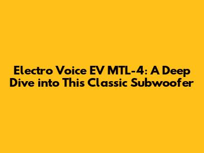 Hey guys! Let's talk about a true legend in the world of professional audio – the Electro Voice EV MTL-4 subwoofer. This beast has been shaking venues and pumping out bass for decades, and there's a good reason why it's still highly sought after today. We’re going to dive deep into what makes the EV MTL-4 so special, its technical specifications, performance characteristics, and why it remains a favorite among sound engineers and audio enthusiasts alike. So, buckle up and get ready for a bass-heavy journey!