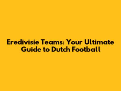 Eredivisie Teams: A Comprehensive Guide