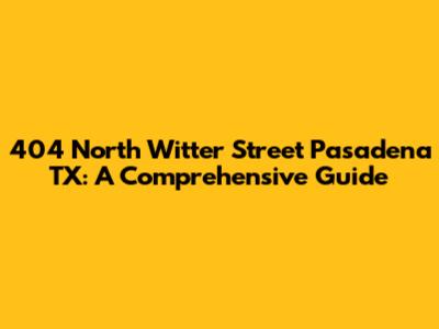 Hey guys! Let's dive into the details surrounding 404 North Witter Street in Pasadena, Texas. This address might just be the spot you're looking for, whether you're trying to find a business, a residence, or perhaps just satisfying your curiosity. This guide is designed to provide you with a comprehensive overview of the area, covering everything from what you can find there to some cool things nearby. We'll explore what makes this location stand out, making sure you've got all the essential info at your fingertips. Ready? Let's get started!
