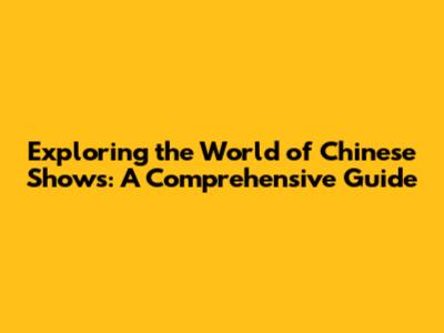 Exploring The World Of Chinese Shows: A Comprehensive Guide