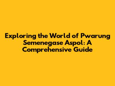 Exploring The World Of Pwarung Semenegase Aspol: A Comprehensive Guide