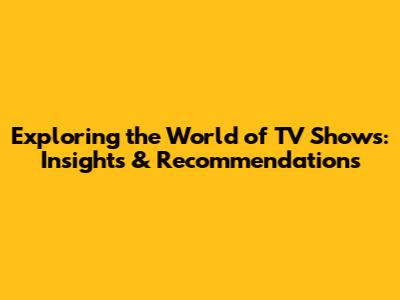 Exploring The World Of TV Shows: Insights & Recommendations