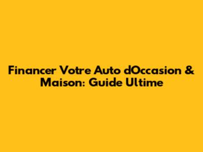 Financer Votre Auto D'Occasion & Maison: Guide Ultime