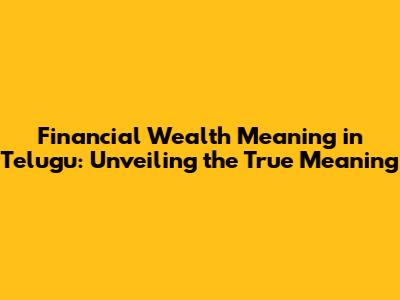 Financial Wealth In Telugu: Unveiling The True Meaning