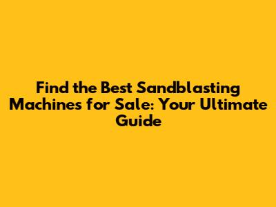Where to Find Sandblasting Machines for Sale