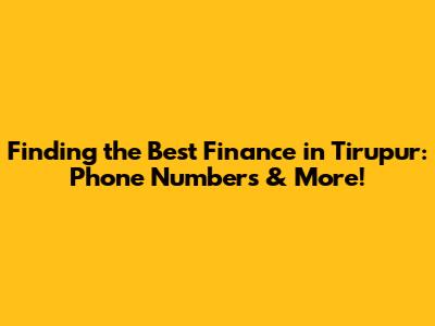 Finding The Best Finance In Tirupur: Phone Numbers & More!