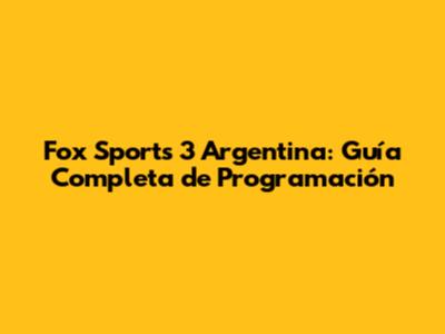 Fox Sports 3 Argentina: Guía Completa De Programación