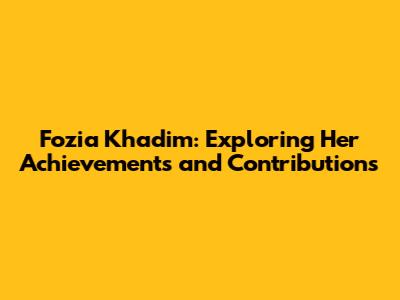 Fozia Khadim: Achievements And Contributions