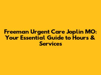 Freeman Urgent Care Joplin MO: Hours & Services Guide