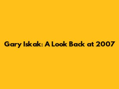 Gary Iskak: A Look Back At 2007