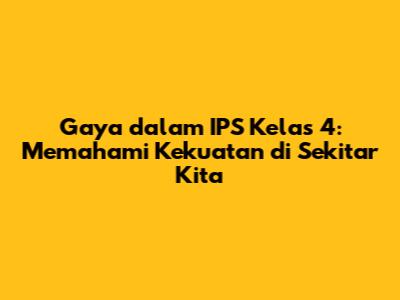 Hai, teman-teman kelas 4! Kali ini, kita akan belajar tentang gaya dalam pelajaran IPS. Pernahkah kalian bertanya-tanya, apa sih sebenarnya gaya itu? Mengapa benda-benda bisa bergerak, berhenti, atau bahkan berubah bentuk? Nah, di artikel ini, kita akan membahas semua itu dengan seru dan mudah dipahami. Siap-siap, ya! Kita akan menjelajahi dunia gaya, mulai dari pengertiannya, jenis-jenisnya, hingga contoh-contohnya dalam kehidupan sehari-hari. Yuk, kita mulai petualangan belajar yang menyenangkan ini!
