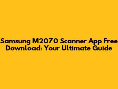 Get The Samsung M2070 Scanner App: Free Download Guide