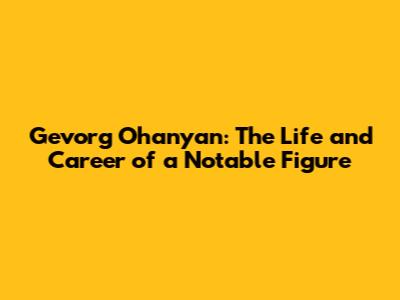 Gevorg Ohanyan: The Life And Career Of A Notable Figure
