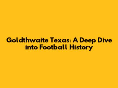 Goldthwaite Texas: A Deep Dive Into Football History