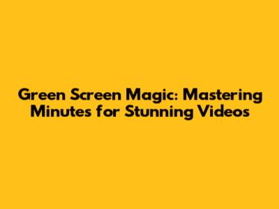 Green Screen Magic: Mastering Minutes For Stunning Videos
