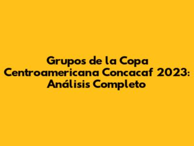Grupos De La Copa Centroamericana Concacaf 2023: Análisis Completo