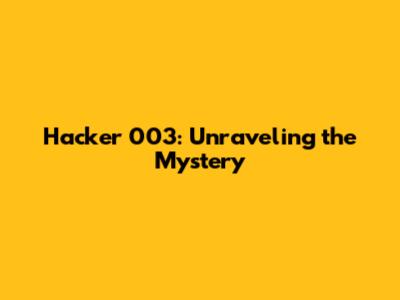 Hacker 003: Unraveling The Mystery