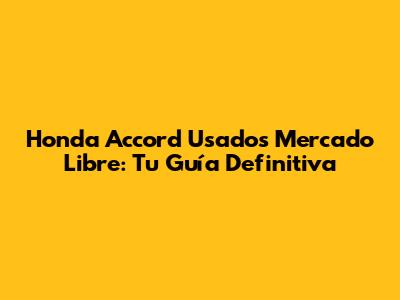 Honda Accord Usados: Tu Guía Completa En Mercado Libre
