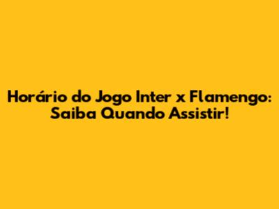 Horário Do Jogo Inter X Flamengo: Saiba Quando Assistir!