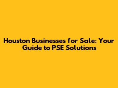 Houston Businesses For Sale: Your Guide To PSE Solutions