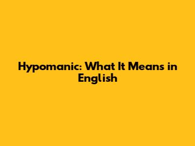 Hypomanic: What It Means In English