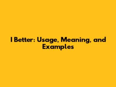 I Better: Usage, Meaning, And Examples