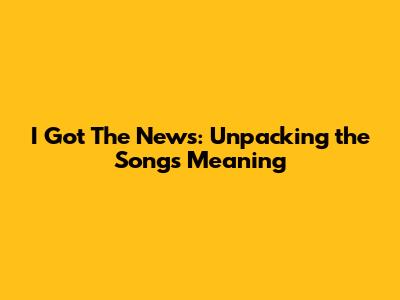 I Got The News: Unpacking The Song's Meaning