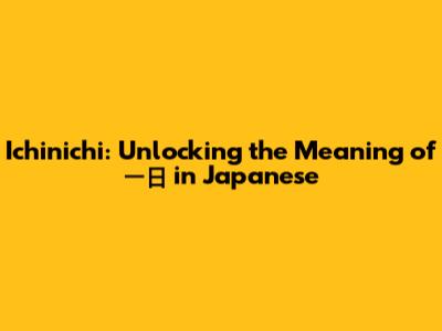 Ichinichi: Unlocking The Meaning Of 一日 In Japanese