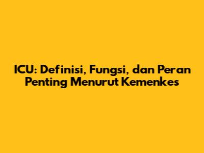ICU, atau Intensive Care Unit, adalah unit perawatan intensif yang disediakan di rumah sakit. Menurut Kemenkes, ICU adalah suatu unit khusus di rumah sakit yang dilengkapi dengan peralatan medis canggih dan tenaga medis profesional yang terlatih untuk memberikan perawatan intensif kepada pasien yang mengalami kondisi kritis atau yang membutuhkan pengawasan ketat. Singkatnya, ICU adalah tempat di mana pasien yang sakit parah mendapatkan perawatan terbaik untuk membantu mereka pulih.