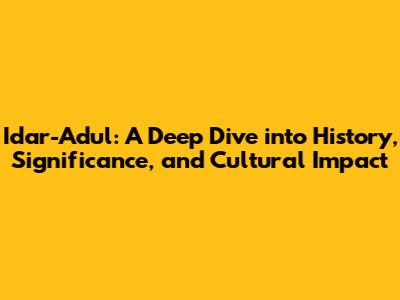Idar-Adul: History, Significance, And Cultural Impact