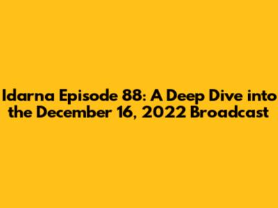 Hey everyone! Let's dive deep into Idarna Episode 88 which aired on December 16, 2022. This episode was packed with exciting content. I'm going to break down the key moments, discuss some of the most interesting discussions, and give you a comprehensive overview. Whether you're a long-time fan or just curious about what happened, this recap will bring you up to speed. So, let’s get started. I'll make it as if we're all just chilling and chatting about the show, okay? No stuffy formalities here! We're all friends, right?