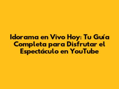 ¡Hola, amigos! ¿Están listos para sumergirse en la emoción de Idorama en vivo hoy en YouTube? Prepárense porque les tengo toda la información que necesitan para no perderse ni un segundo de este evento. En este artículo, les guiaré a través de todo lo que necesitan saber, desde cómo encontrar la transmisión en vivo hasta consejos para disfrutar al máximo la experiencia. Así que, pónganse cómodos, relájense y prepárense para una aventura inolvidable. ¡Vamos a ello!