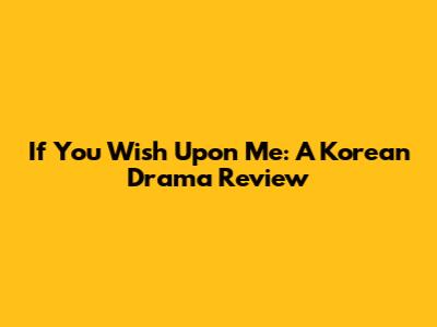 If You Wish Upon Me: A Korean Drama Review