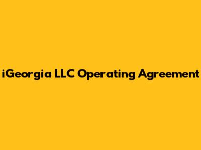What is an iGeorgia LLC Operating Agreement?