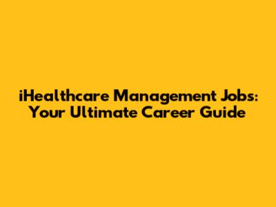 IHealthcare Management Jobs: Your Ultimate Career Guide