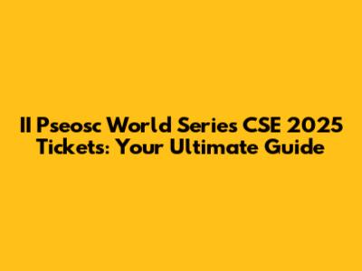 II Pseosc World Series CSE 2025 Tickets: Your Guide