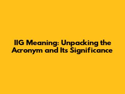 IIG Meaning: Unpacking The Acronym And Its Significance