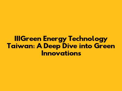 Hey guys! Let's dive deep into something super cool and important: IIIGreen Energy Technology in Taiwan. We're talking about a place that's not just embracing green energy, but is actually leading the charge with some seriously innovative tech. Taiwan, an island nation known for its tech prowess, is making major waves in the renewable energy sector, and IIIGreen is a key player. We'll explore the advancements, challenges, and the impact this has on the environment and global sustainability.