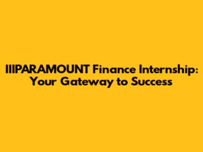 IIIPARAMOUNT Finance Internship: Your Gateway To Success