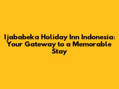 Ijababeka Holiday Inn Indonesia: Your Ultimate Guide