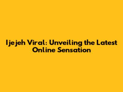 Ijejeh Viral: Unveiling The Latest Online Sensation