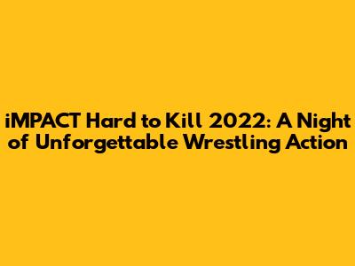 Hey wrestling fans! Get ready to dive deep into the electrifying world of iMPACT Wrestling as we break down everything that went down at Hard to Kill 2022. This event wasn't just another pay-per-view; it was a showcase of raw talent, intense rivalries, and moments that had us all on the edge of our seats. From championship showdowns to unexpected twists, Hard to Kill 2022 delivered an absolute barnburner that will be talked about for a long time. So grab your favorite snacks, settle in, and let's relive some of the most incredible action from this epic night. We're going to cover all the major matches, the shocking outcomes, and what it all means for the future of iMPACT Wrestling. Trust me, guys, you don't want to miss this breakdown!