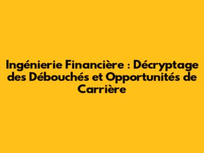 Les Débouchés de l'Ingénierie Financière : Un Monde d'Opportunités