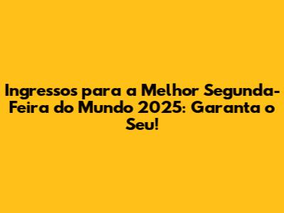 Ingresso Melhor Segunda-Feira Do Mundo 2025: Garanta O Seu!