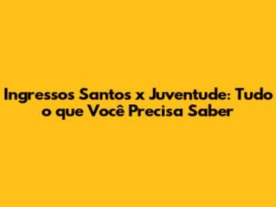 Ingressos Santos X Juventude: Guia Completo E Dicas