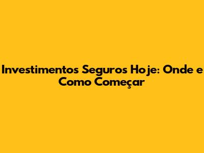 Investimentos Seguros Hoje: Onde E Como Começar
