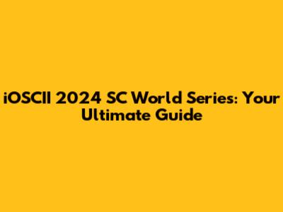 Decoding the iOSCII 2024 SC World Series Schedule: Key Dates