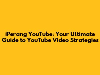 IPerang YouTube: Guide To YouTube Video Strategies